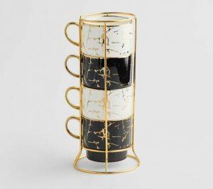 Krūzīte ar apakštasi melna ar zelta maliņu XL
