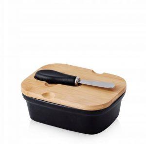 Sviesta trauks melns ar lāpstiņuKoka vāksKompelktā sviesta nazis