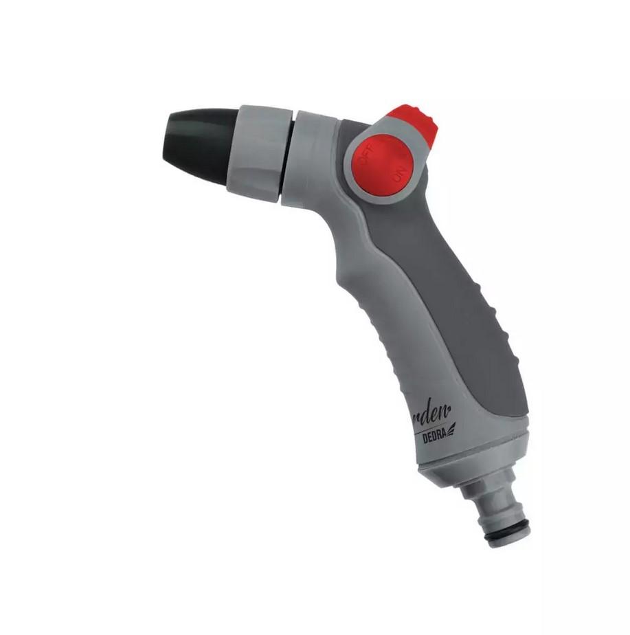 Iezīmes:Izgatavots no ABS un mīksta T PR kombinācijasRegulējams uzgalisPistole ar4 funkcijāmŪdens intensitātes regulēšana ar īkšķiViespēja pielāgot ūdens strūklas formuPielāgots čeku sliedēmTehniskie dati:Pielāgots 1/2″ ātrajam savienotājamKonstrukcijas materiāls: virsbūve A BS+TPR