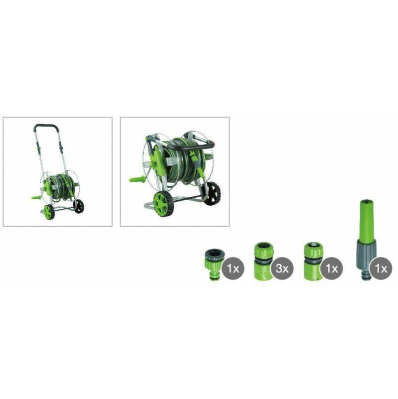 Original price was: 59,98 €.58,48 €Current price is: 58,48 €.Daye ratiņi un šļūtene 25m 3/4″ komplektā ar uzgaļiem