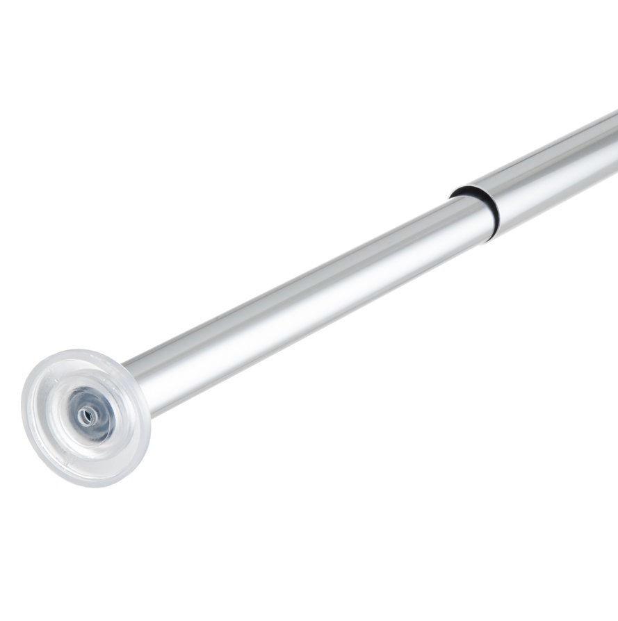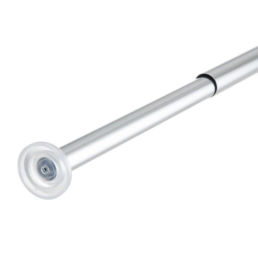 Hroma krāsas dušas aizkara stienis,regulējams garumā no 70 līdz 120 cmAtsperes mehānisms ļauj stieni nospriegot vietābez skrūvēm vai urbšanasStieņa diametrs 20 mm.Materiāls: hromēts alumīnijs