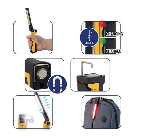 LED darba lampa 10W 800lm 360° magnētiskais statīvsar akumulatoru 1800mAh USB lādētājs IP44 Commel