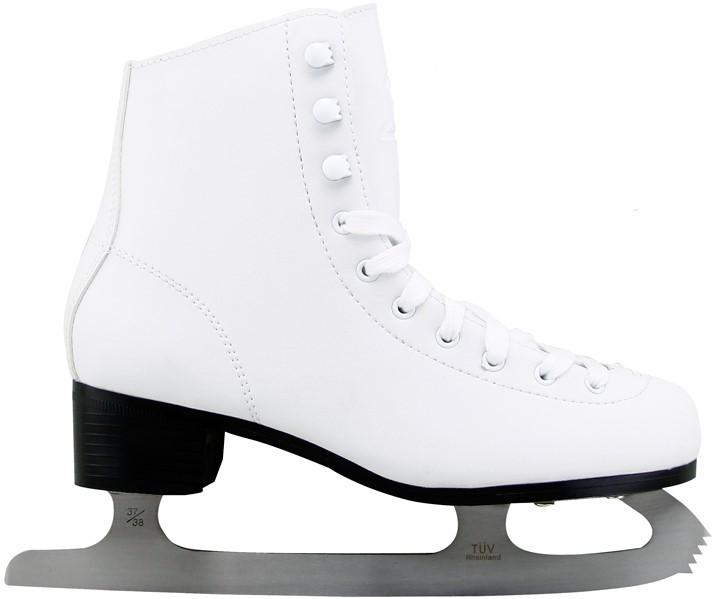 Ārpuse ir klāta augsta kvalitātear biezu kārtu PVC mākslīgās ādas.Slidas ir izgatavotas no izturīgiempret temperatūras izmaiņām materiāliem.Stipri rūdīta tērauda asmeņi.Pastiprināta priekšēja daļanodrošina stabilitāti un komfortu.Izmērs: 43Krāsa: balts