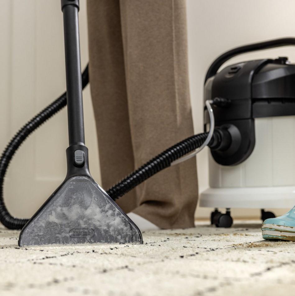Dziļa tīrīšana, ergonomisks dizains un daudzfunkcionalitāte:SE 4 mazgājamais putekļsūcējs ar šķidruma un netīrumunosūkšanas funkciju nodrošina higiēnisku tekstila virsmudziļu tīrīšanu. Pārbaudītā Kärcher aerosola ekstrakcijastehnoloģija nodrošina vislabākos tīrīšanas rezultātus: tīrsūdens un Kärcher paklāju tīrīšanas līdzeklis RM 519 tiekinjicēts auduma dziļajos slāņos un pēc tam uzsūkts kopāar izšķīdušajiem netīrumiem – ideāli piemērots ģimenēm,alerģiskiem cilvēkiem un mājām ar mājdzīvnieki.Jauda,…