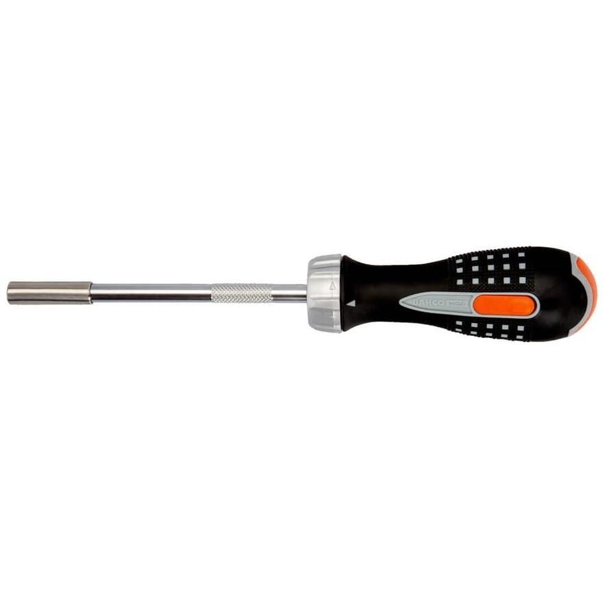 Stingrs sprūdrata uzgaļu turētāja skrūvgriezis 1/4 uzgaļiemDivkomponentu rokturis ar teksturētu apdari, kompakts,lai piekļūtu slēgtām telpām48 zobu sprūdrata skrūvgriezis, kas nodrošina vienmērīgudarbību un minimālu rotācijas loku, lai noķertunākamo ķepas zobuVienmērīgs sprūdrata gājiens, trīs pozīciju sprūdratamehānisms: uz priekšu, atpakaļgaitā unneitrāls nākamā ķepas zobsMagnētiskais asmens nostiprina uzgali skrūvgriežā unatvieglo uzgaļu nomaiņu. Nerūsējošā tērauda asmensKartona kastē ar pakarināšanas caurumu