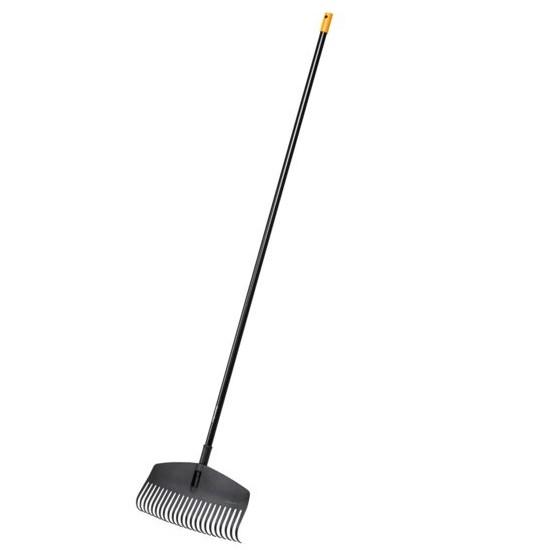 Fiskars Solid Leaf Rake M ir paredzēts vieglākai grābšanaiap kokiem, zem krūmiem un stūrosAugstas kvalitātes sveķu galva un alumīnija rokturisnodrošina ilgstošu izturībuZari ir izliekti, lai grābšanas laikāuz galvas neuzkrājas lapas, zari un gruži1690 mm garš23 zaru dizains