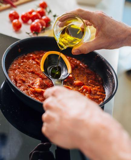 Silikona malas neskrāpē cepampannas pārklājumuIebūvētais mērījumu rīks ļauj nomērīt tējkaroti,ēdamkaroti un 0,5 dlĒrti lietojama gan labročiem, gan kreiļiemIebūvētais rīka balsts ļauj nenosmērēt virtuves virsmas