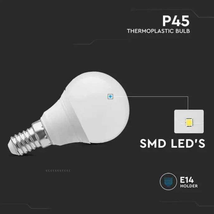 LED Spuldze E14 4.5W(470Lm), V-TAC, P45, IP20, silti balta gaisma 3000K