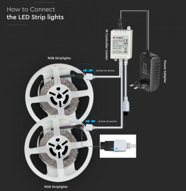 2630_ RGB krāsainas LED lentes komplekts 48w (4200Lm) ,SMD5050 300LED, 2x5m,komplektā tālvadības pults un kontrolieris,barošanās bloks 12V, 2 x AA baterijas