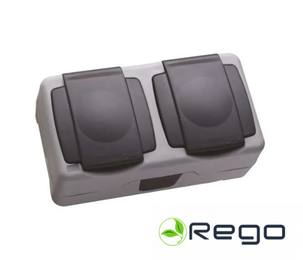 Rozete ar vāku Makel ,2-viet.,IP55,pelēka,v/a