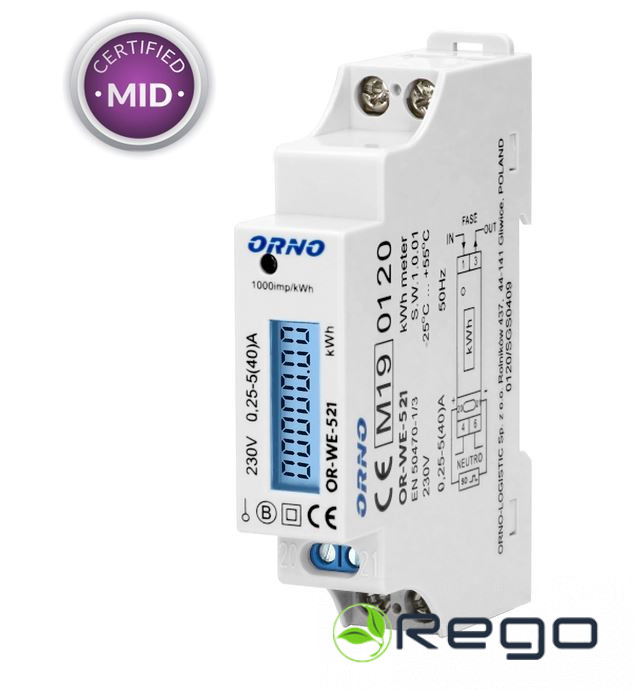Skaitītājs OR-WE-521 1F 40A ar MID sertifikātu 18x110x60mm