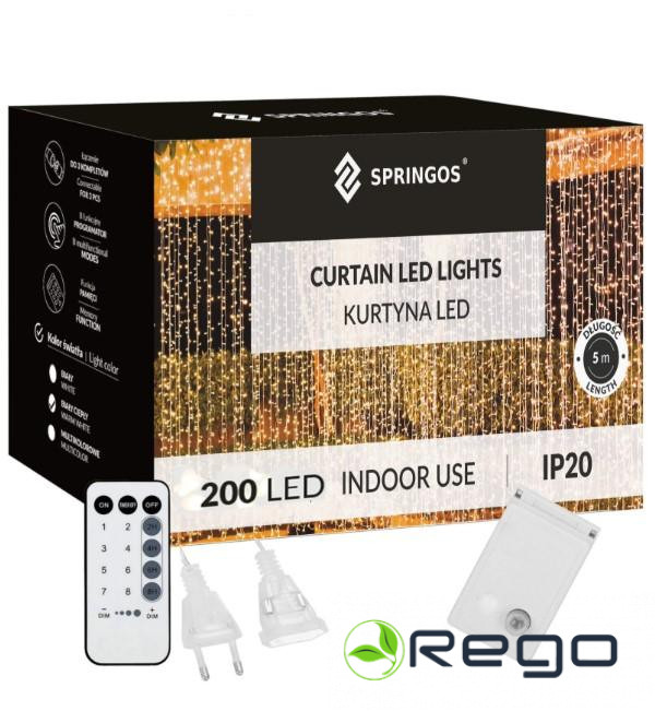 Springos Ziemassvētku LED lampiņu aizkars CL4054 200LED, silti baltas,