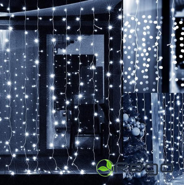Springos Ziemassvētku LED lampiņu aizkars CL4104 300LED, auksti baltas, 3x3m