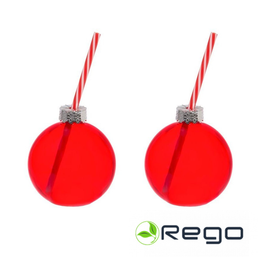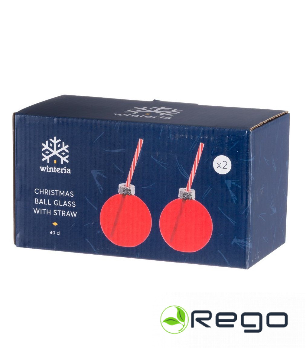 Winteria Ziemassvētku bumbas glāze stikla ar salmiņu 2gab