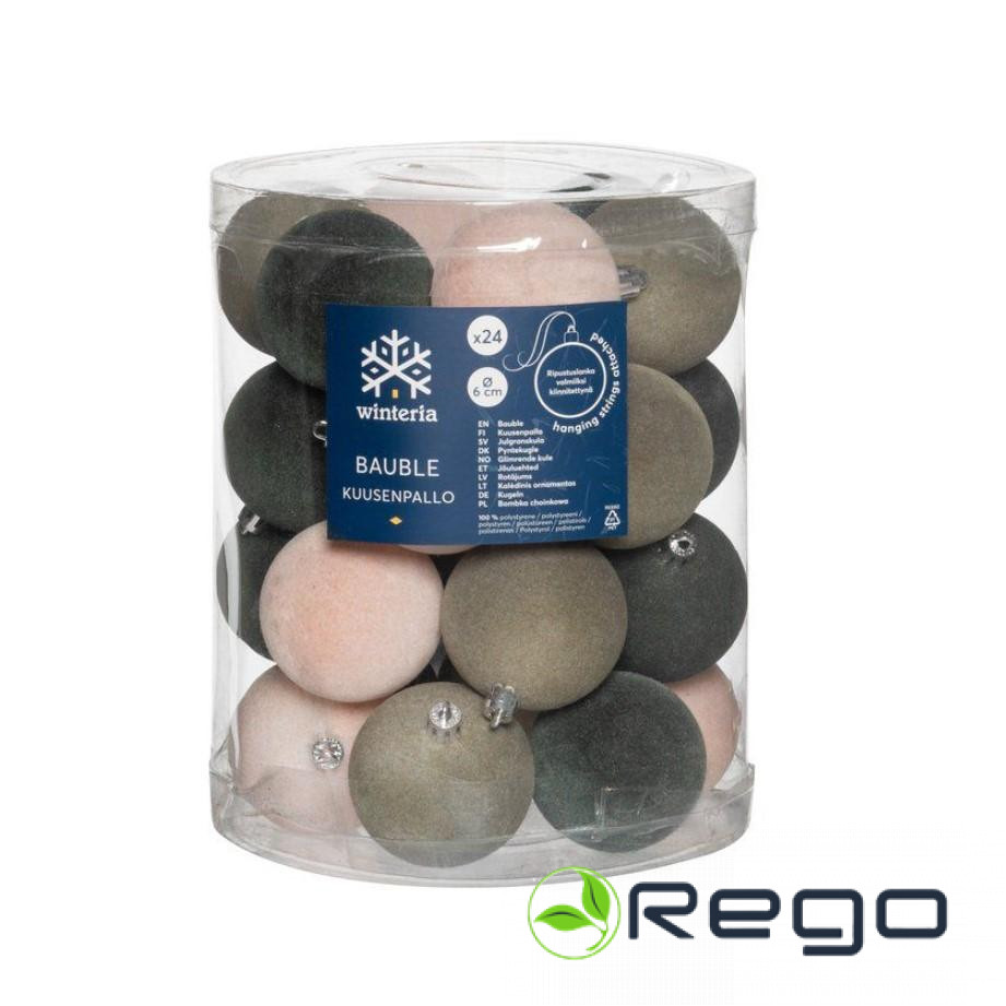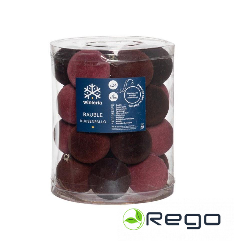 Winteria Ziemassvētku rotājumi Velvet 6cm 24gab